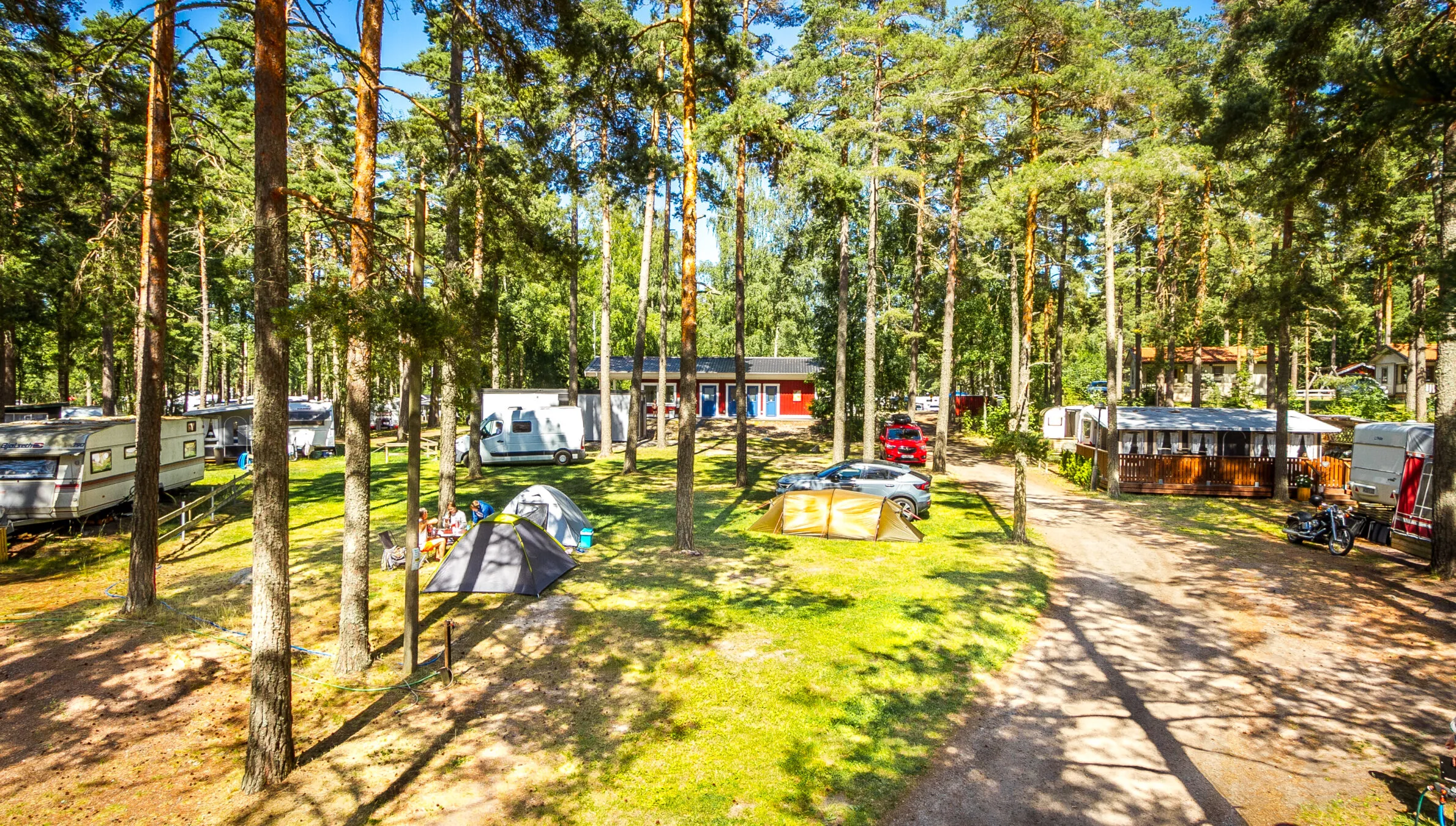 Vår vackra sandstrand ska kunna upplevas av alla. Föredrar du att campa i tält, så ska du självklart också komma till oss. Vi har vackra tältplatser som gör vår natur rättvisa. Här kommer ni trivas, och med närheten till vår vackra sandstrand är också ett riktigt stort plus.