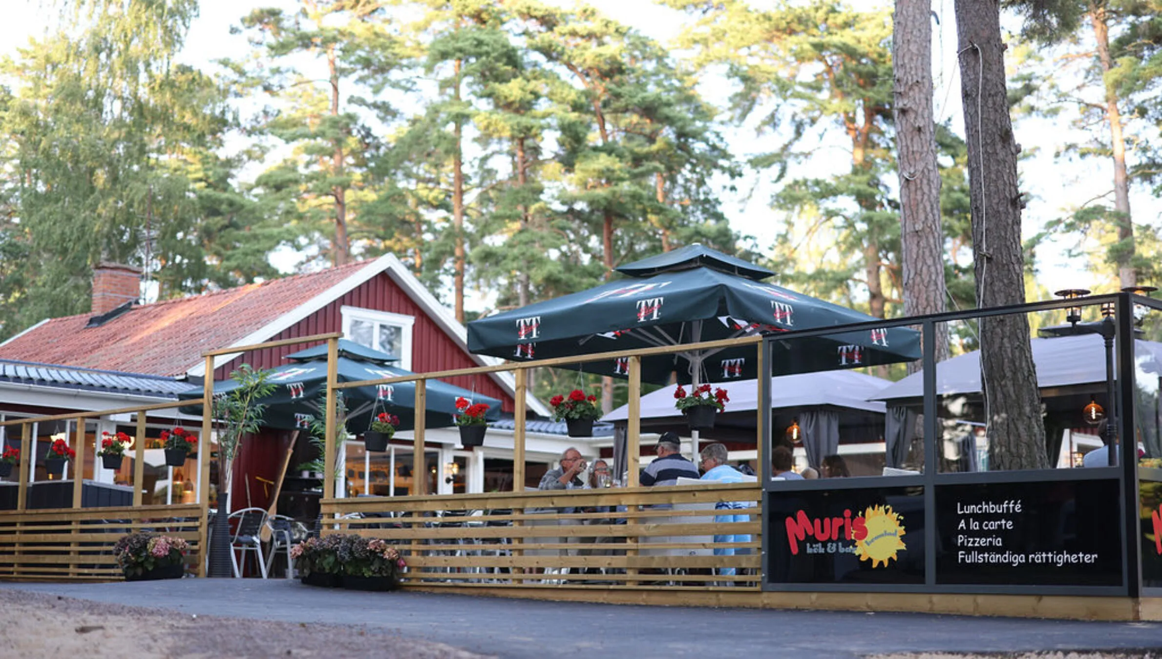 På restaurangens uteservering är det bara några enstaka tallar och stranden som skiljer er från vattnet. Här kan ni njuta av god mat och ett glas vin om ni önskar. Vi har fullständiga rättigheter.